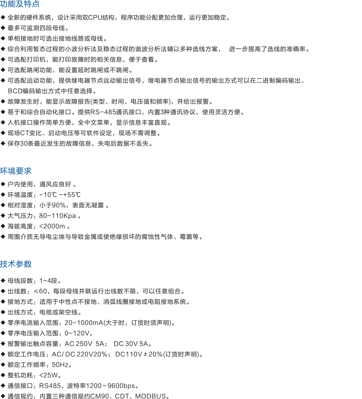 在電力系統(tǒng)中,單相接地時,由于故障點電流較小,且由于系統(tǒng)三相電壓仍然對稱不影響對負荷的正常供電,一般允許繼續(xù)帶故障允許1-2小時。但長期運行,由于非故障的兩相對地電壓升高√3倍,可能引起絕緣的薄弱環(huán)節(jié)被擊穿,發(fā)展成為相間短路,使事故擴大。微機小電流接地選線裝置,能在系統(tǒng)發(fā)生單相接地時,準確、迅速地選出接地線路或母線。使用簡單方便,無需維護,可根據(jù)用戶需要將相關(guān)信息通過通信接口傳給上級監(jiān)控系統(tǒng),適用于無人值守變電站。